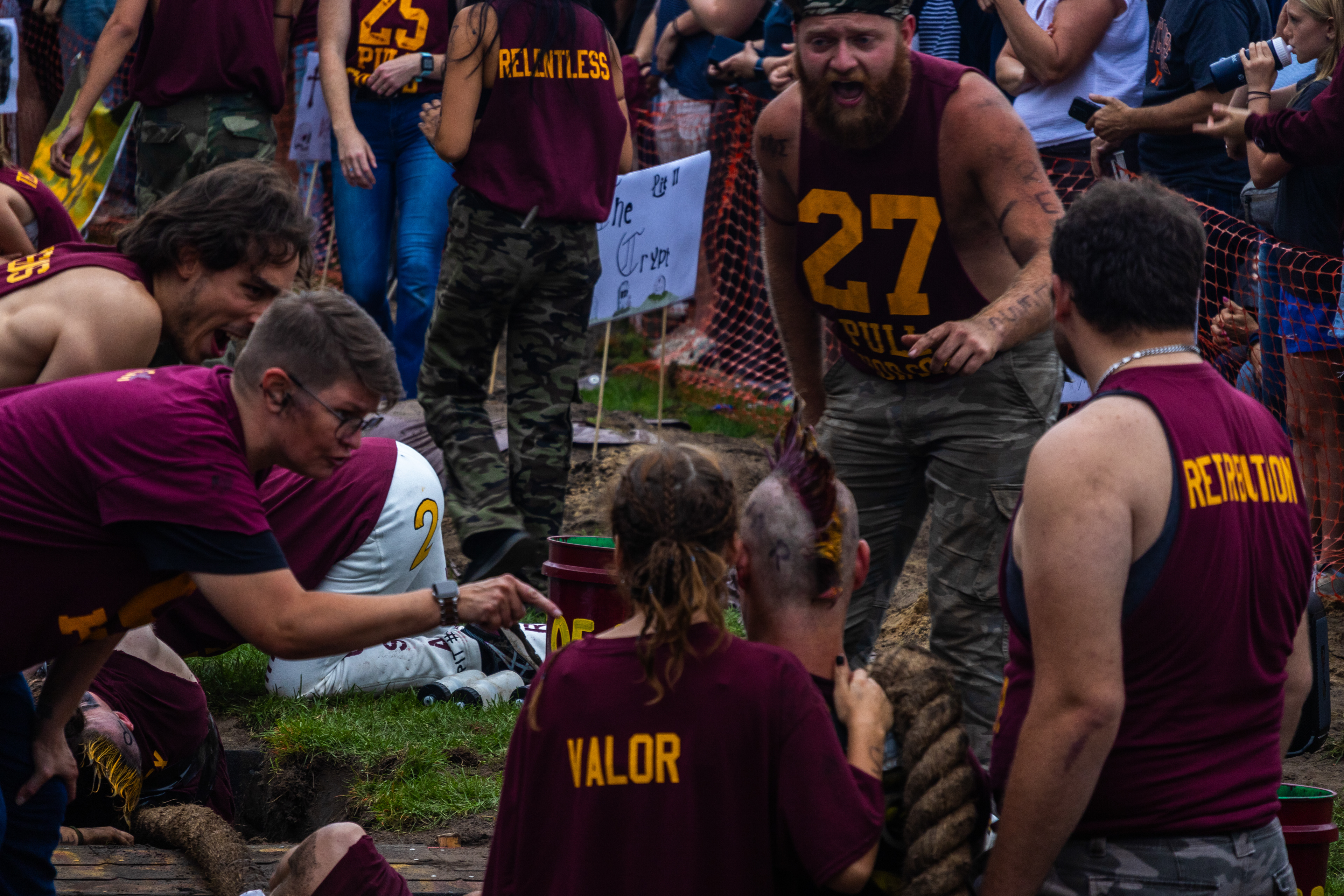 Each team consists of up to 18 pullers, lying low in the pit, and an equal number of moralers, who stand above, shouting commands and keeping their teammates locked in sync. Pullers wait for the moraler’s signal, then dig in and heave with everything they have; muscles shaking, breath quickening, the rope shifting back and forth in an unrelenting test of strength and willpower. The struggle plays out in inches, neither side willing to yield. And then, just like that, it’s over. Those three hours (sometimes less) decide the winner, but the camaraderie, the challenge, and the fight stay with them for a lifetime.